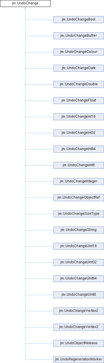 Reimplemented in jm::UndoChangeBool, jm::UndoChangeInt8, jm::UndoChangeUInt8, jm::UndoChangeInt16, jm::UndoChangeUInt16, jm::UndoChangeInt32, jm::UndoChangeUInt32, jm::UndoChangeInteger, jm::UndoChangeInt64, jm::UndoChangeUInt64, jm::UndoChangeSizeType, jm::UndoChangeFloat, jm::UndoChangeDouble, jm::UndoChangeString, jm::UndoChangeVertex2, jm::UndoChangeVertex3, jm::UndoChangeDate, jm::UndoChangeColour, jm::UndoChangeObjectRef, jm::UndoChangeBuffer, jm::UndoRegenerationMarker, and jm::UndoObjectRelease.